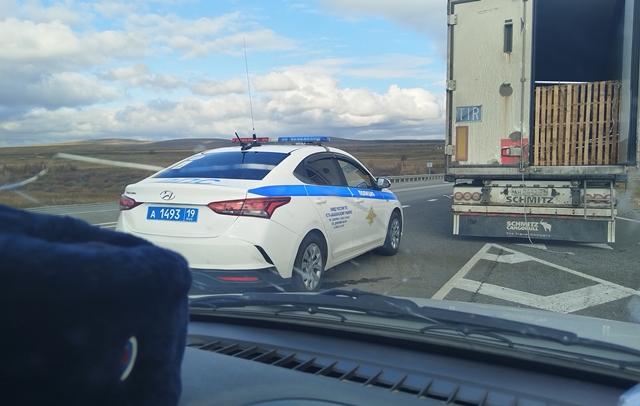 Первый грузовик, незаконно перевозивший 48 коров, инспекторы ГАИ и Россельхознадзора остановили на выезде из Абакана в сторону Черногорска.