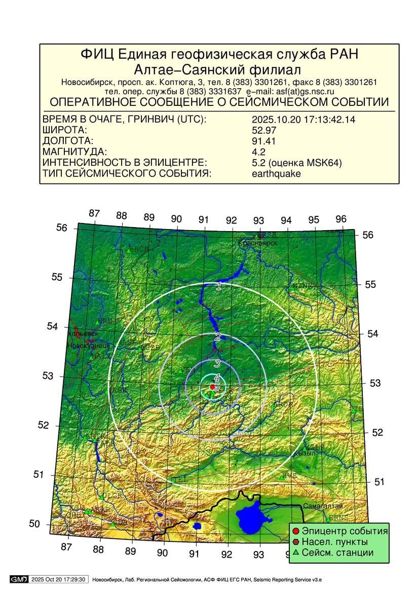 Эпицентр находился в Бейском районе в 14 км к югу от Саяногорска.