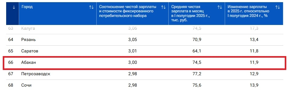 данном рейтинге занимает 66 место со средней чистой зарплатой 74,5 тысяч рублей.