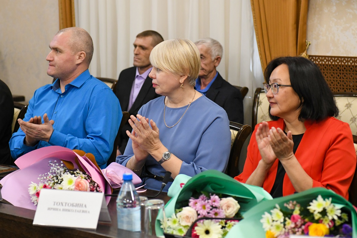 За многолетний плодотворный труд и большой вклад в развитие сельхозотрасли в Хакасии 15 специалистов отмечены Почетной грамотой РХ: О. Байтуякова, О. Баузер, С. Литвиненко, И. Николаева, С. Олиновский, А. Чернов, О. Горнова, Н. Михайлова, Ю. Ребриков, М. Есаулов, Е. Дробинин, А. Сметанин, С. Турумов, И. Афанасьева и Е. Янгулова.