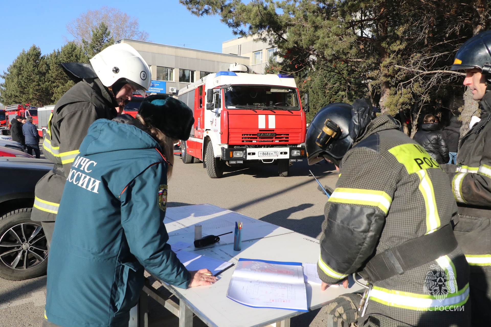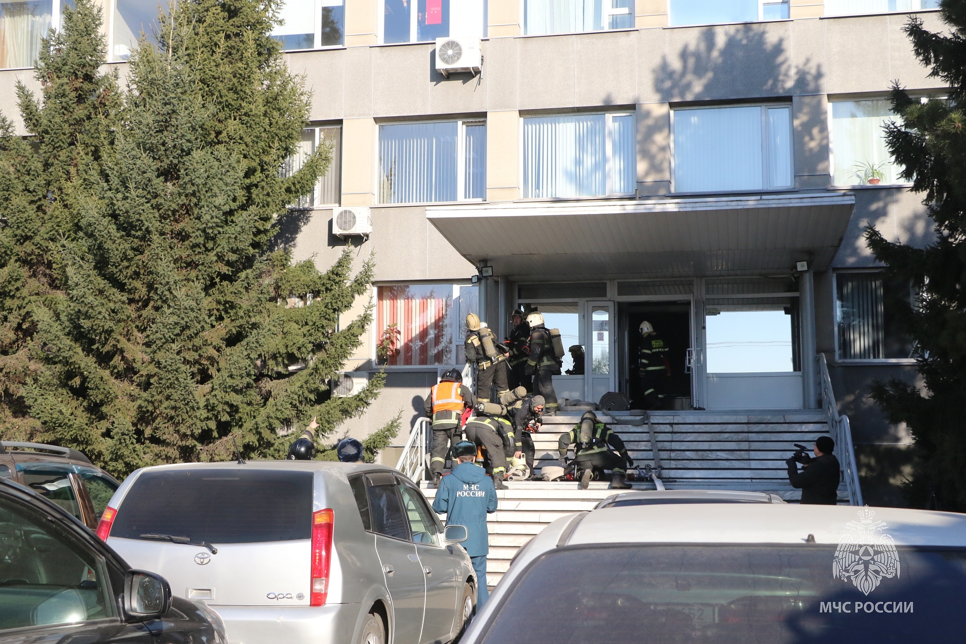 Сотрудники МЧС тренировались на объекте с массовым пребыванием людей - административном здании "Россетей".