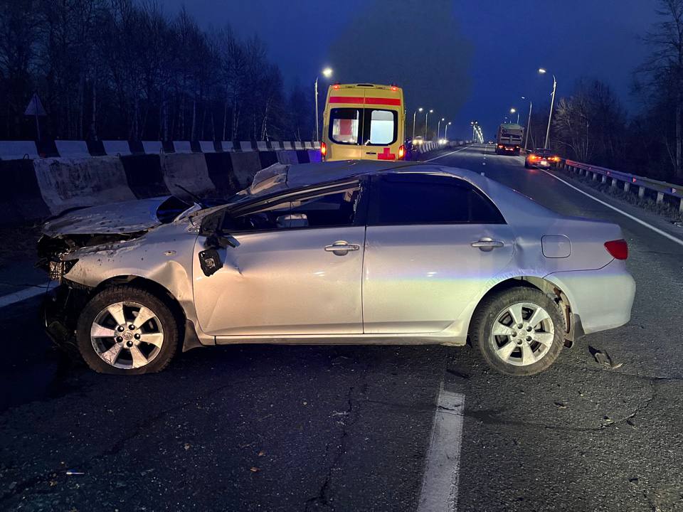 В результате рулевой "Toyota Corolla" не справился с управлением и врезался в бетонное ограждение.